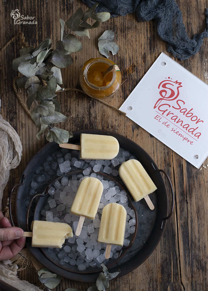 - 2 cucharadas de miel (no le aporta sabor, pero consigue que los polos queden más cremosos).