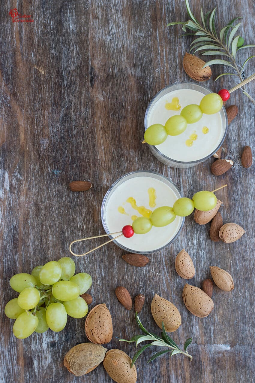 El ajoblanco es una receta típica de la cocina andaluza, sobre todo de la provincia de Almería y de la de Málaga. Junto con el gazpacho y el salmorejo se convierte en los abanderados de las sopas frías andaluzas. Tiene su base en una buena almendra, así como en un buen AOVE.