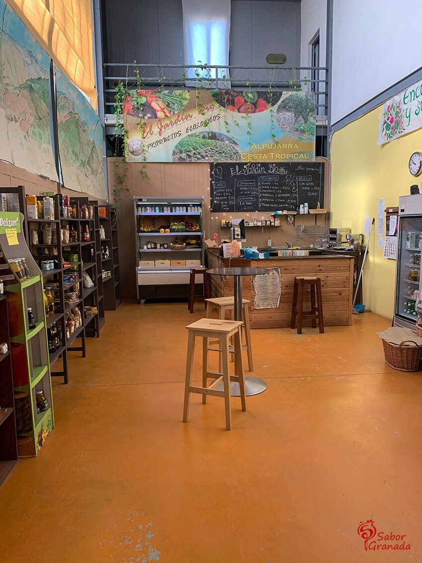 Se trata de una visita obligada si estáis por la Alpujarra Granadina, hace unas semanas pude visitar las instalaciones y descubrí que es más que una nave donde se comercializan productos, es una forma de vida, donde podemos encontrar una pequeña cafetería-tienda, una zona destinada al conocimiento llena de libros sobre el cultivo ecológico, un aula escolar Montessori, otro aula destinado a exponer trabajos manuales realizados en la Alpujarra, un jardín vertical e incluso una cocina donde poder usar los productos para convertirlas en ricas recetas.