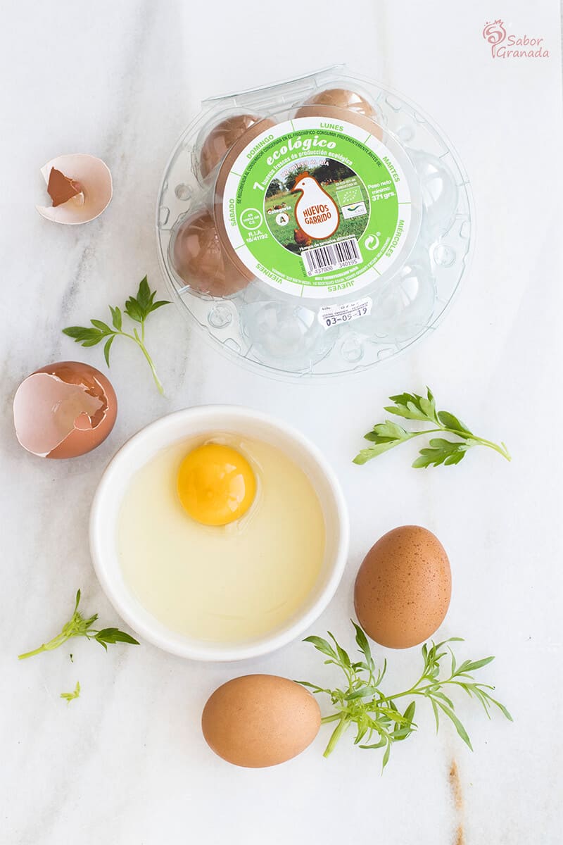 Para el revuelto hemos usado los huevos ecológicos de Huevos Garrido, que este año estrenan nuevo formato de siete, un huevo para cada día de la semana. En Caparacena tenemos la granja principal de la empresa desde donde se centraliza todo el trabajo de la marca. Y podemos disfrutar, entre otros, de estos huevos ecológicos de categoría A procedentes de gallinas que viven en libertad y se alimentan de productos ecológicos.