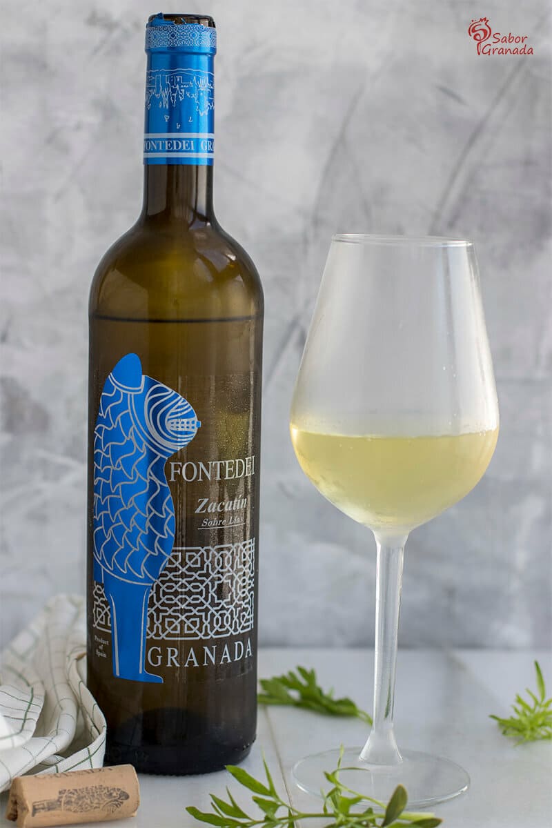 Y un buen plato tiene que estar maridado con un gran vino, y para ello hemos usado uno de los blancos de moda en Granada, porque el vino Zacatín de Bodegas Fontedei lleva relativamente poco tiempo en el mercado pero ha salido a lo grande, recibiendo numerosos premios que avalan su calidad. Se trata de un vino monovarietal de Moscatel de Alejandría cuya nota de cata es la siguiente: “olor: Amarillo pajizo brillante. Nariz: Cítricos, flores blancas e hierbas. Toques a frutas (melocotón). Boca: Fresco, sabroso, equilibrado y con muy buena acidez”.