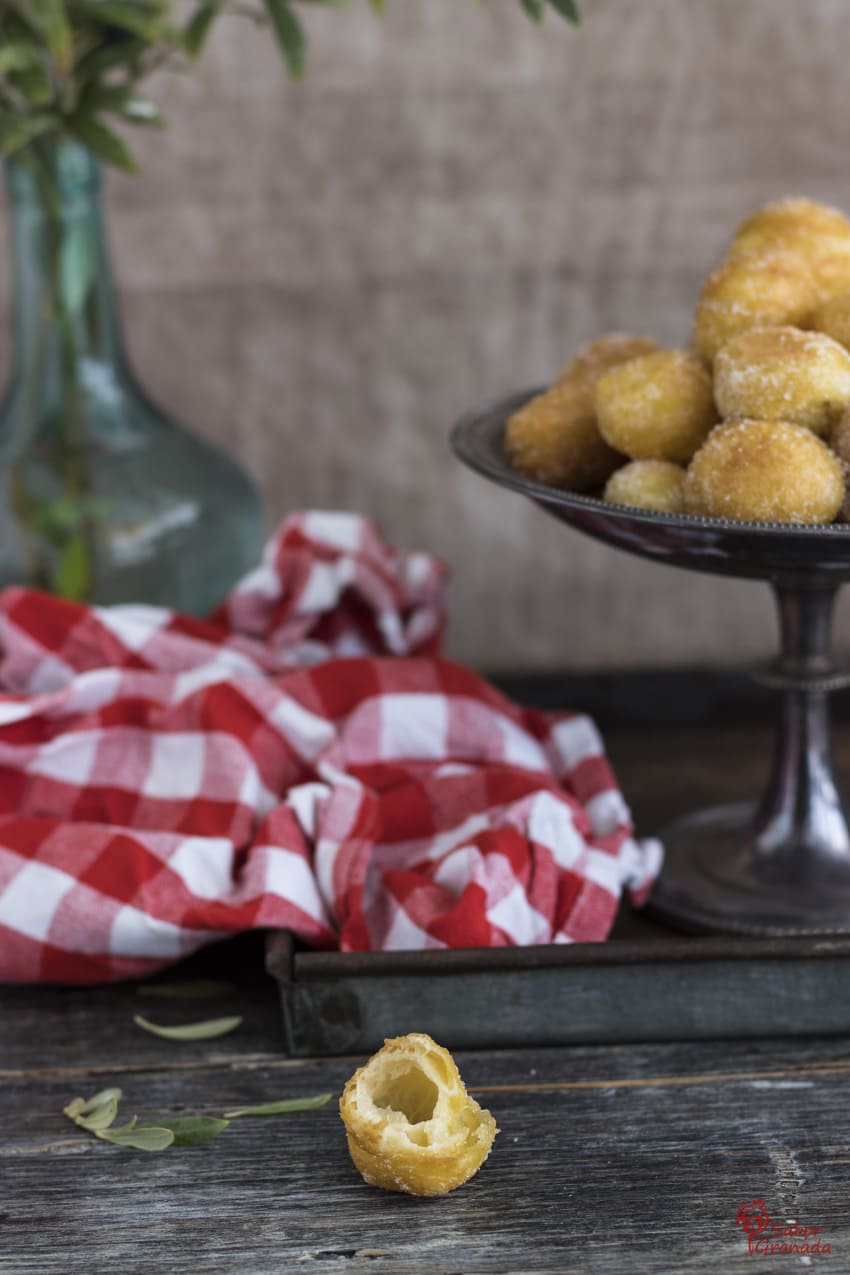 Pasado este tiempo ponemos una sartén mediana con abundante aceite y cuando esté caliente vamos haciendo bolitas pequeñas con la masa y añadiendo a la sartén, dejando espacio entre ellas porque crecen bastante en la sartén. Una vez que estén doradas sacamos y dejamos escurrir el exceso de aceite sobre papel absorbente.