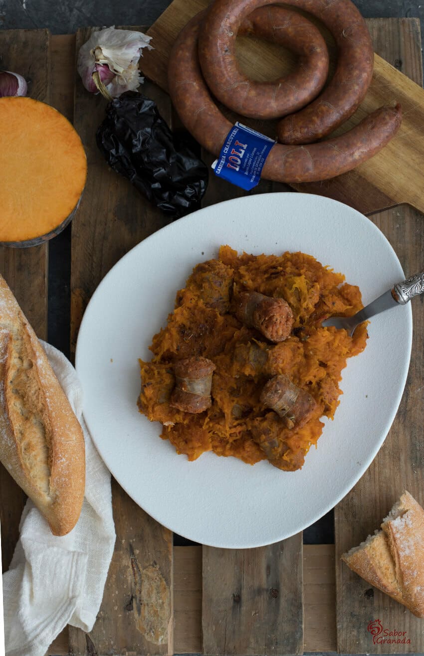 La calabaza es uno de los símbolos del otoño que se acerca y no sabéis lo de juego que puede llegar a dar en la cocina, en esta ocasión la he preparado frita con un aliño que la hace muy sabrosa y que además se acompaña de un chorizo riquísimo. Se trata de un plato típico de muchos pueblos de Granada, con sus variantes, y que queda delicioso siempre.