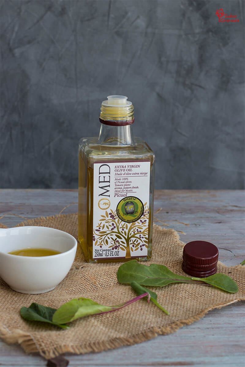 El AOVE usado es el O-MED Picual, uno de los cinco AOVEs premiados por su calidad en la última edición de los premios del AOVE organizados por la Diputación de Granada, concretamente ha conseguido el premio al mejor frutado verde intenso. O-MED es una empresa sita en Ventas de Huelma que ha conseguido numerosos premios por la calidad de sus productos.