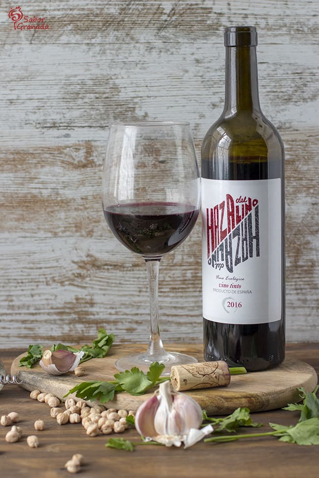 Y este rico guiso de garbanzos lo he maridado con un vino tinto, el de Bodegas Haza del Lino, se trata de un vino ecológico formado por un coupage de uva tempranillo, garnacha y petit verdot, de viñedos de más de 1100 metros de altitud. Se trata de una bodega cita en Haza del Lino, con una producción de unas 20000 botellas anuales de las que se venden todas. Y podemos encontrar además de un rosado y un blanco, distintos tintos, como éste que os enseño hoy y el Ollero, un tinto con 9 meses en barrica.