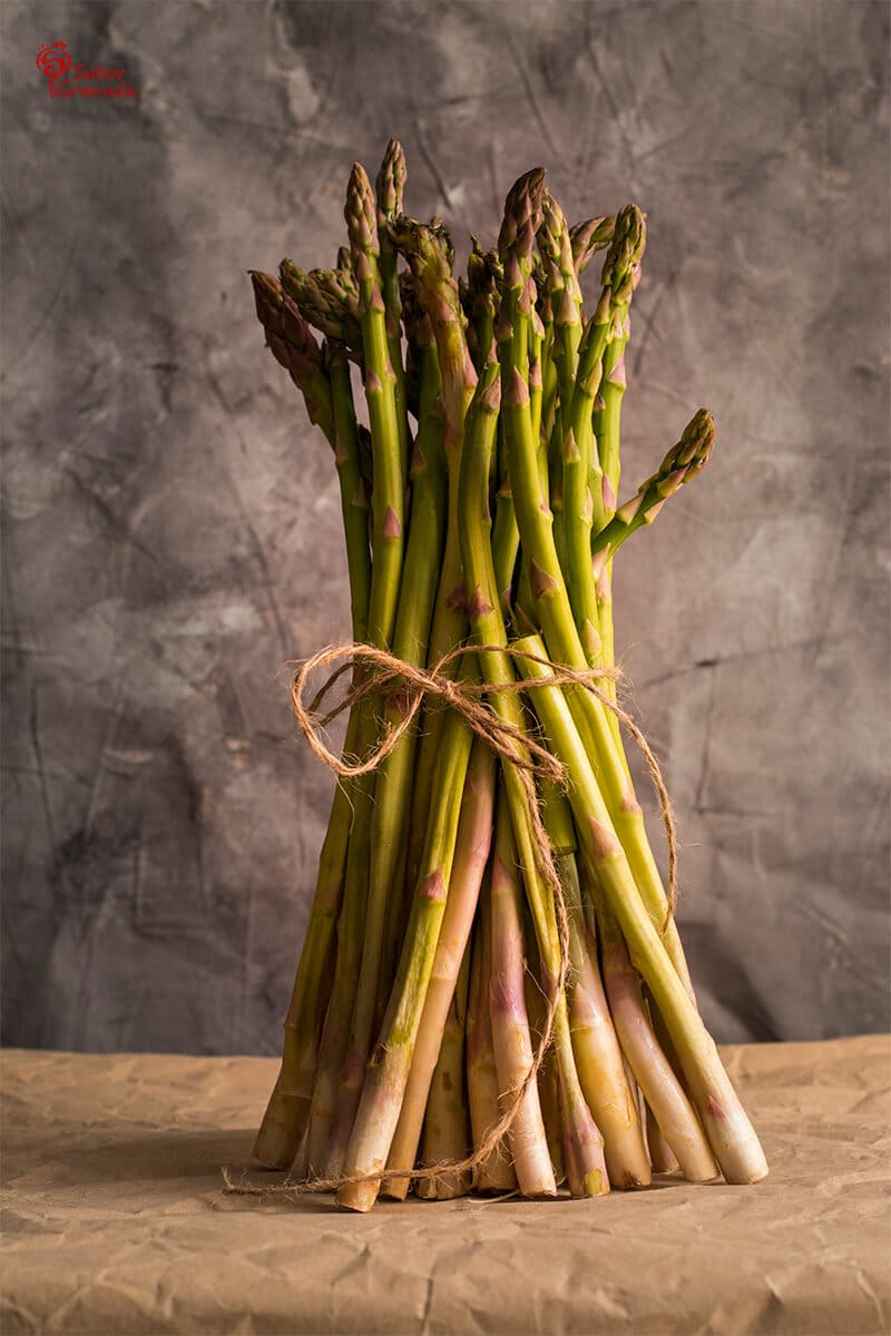 Para la receta hemos usado espárragos de Huetor Tájar, el Consejo regulador de la indicación geográfica protegida del espárrago de Huetor Tajar protege a uno de los emblemas más característicos de la gastronomía granadina y de característica únicas, “nacidos en la Sierra y criados en la vega”. Estos espárragos tienen unas características especiales que convierten cualquier receta elaborada con ellos en un manjar exquisito.