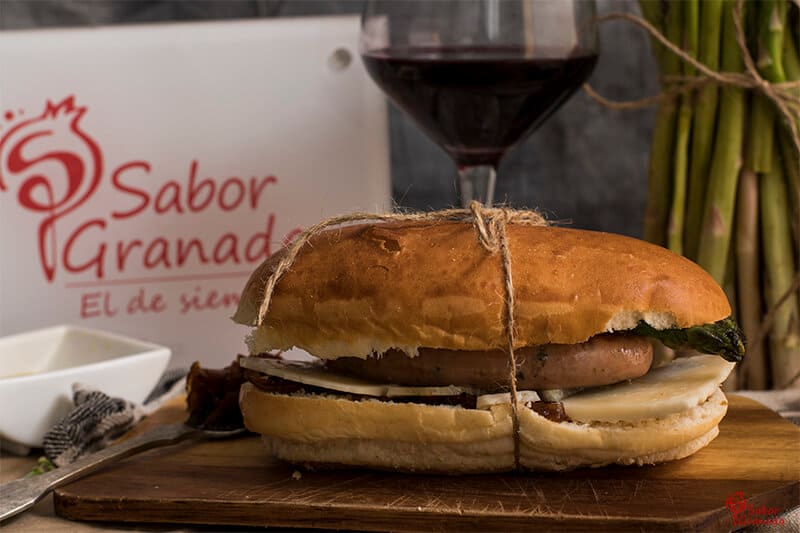 Hace unos meses en las Primeras Jornadas Gastronómicas de Montillana, dedicadas a nuestro poeta más universal, Federico García Lorca, tuve el placer de elaborar un show cooking con tres recetas dedicadas al poeta granadino. Una de las recetas que preparé, relacionado con la época de Lorca en Nueva York, fue este hot dog o perrito caliente tan típico de la ciudad neoyorquina con ingredientes muy nuestros. Hemos sustituido la salchicha tipo Frankfurt por una salchicha de pollo hecha a la plancha con un poco de AOVE de nuestra tierra. El típico bollito para hot dog lo hemos cambiado por unos bollitos de Viena muy especiales, hemos acompañado con queso de La Alpujarra y con espárragos verdes de Huetor Tájar, además de un delicioso chutney de calabaza. Y todo ello maridado con un vino de Granada, por lo que, en definitiva, se trata de un perrito caliente “made in Sabor Granada”.