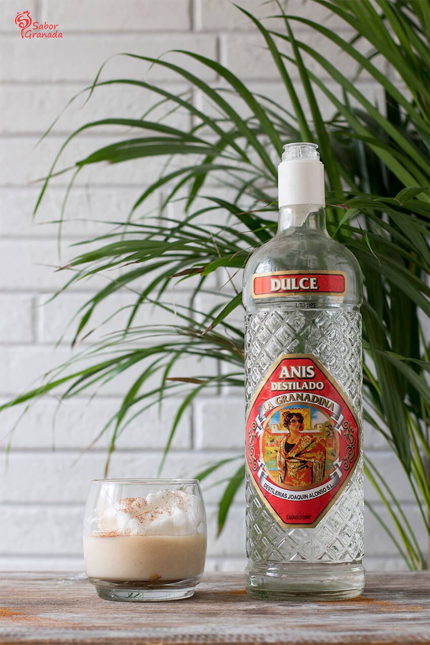 El anís dulce con el que hemos “emborrachado” las natillas es el de La Granadina, producido por Destilerías Joaquín Alonso, empresa sita en Atarfe. Los anises de Destilerías Joaquín Alonso son obtenidos por medio de la destilación con semillas de matalahúga y selectos alcoholes naturales en alambiques de cobre. Obteniendo una óptima calidad en el producto final. En la elaboración de anís dulce o semidulce además del destilado obtenido se le añade azúcar y para la obtención de los anises secos y extra secos se utiliza el destilado obtenido rebajándolo solo con agua hasta obtener la graduación deseada. La fórmula y el procedimiento de elaboración de estos productos es la misma desde el año 1944.