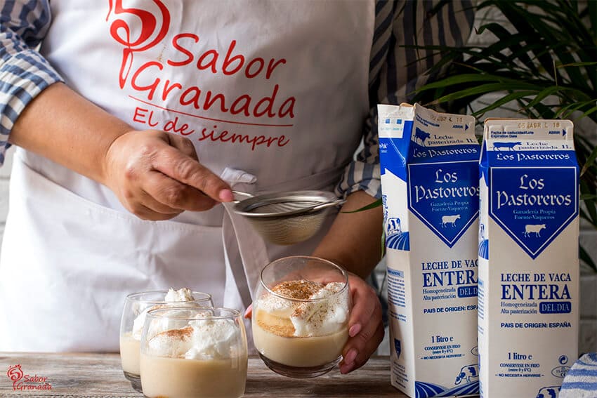 La leche con la que hemos elaborado las natillas es de Los Pastoreros, La Cooperativa Los Pastoreros, de Fuentevaqueros, lleva 60 años ofreciéndonos sus productos: leche fresca, queso fresco, requesón y miel. 60 años de andadura donde han sido premiados con un sinfín de galardones por su buen hacer. Su leche entera se produce en su propia granja y pasa por un control por técnicos veterinarios para conseguir la máxima calidad. Pasterizada, higienizada y homogenizada en sus mismas instalaciones con sus propios medios en diferentes tipos de envases.