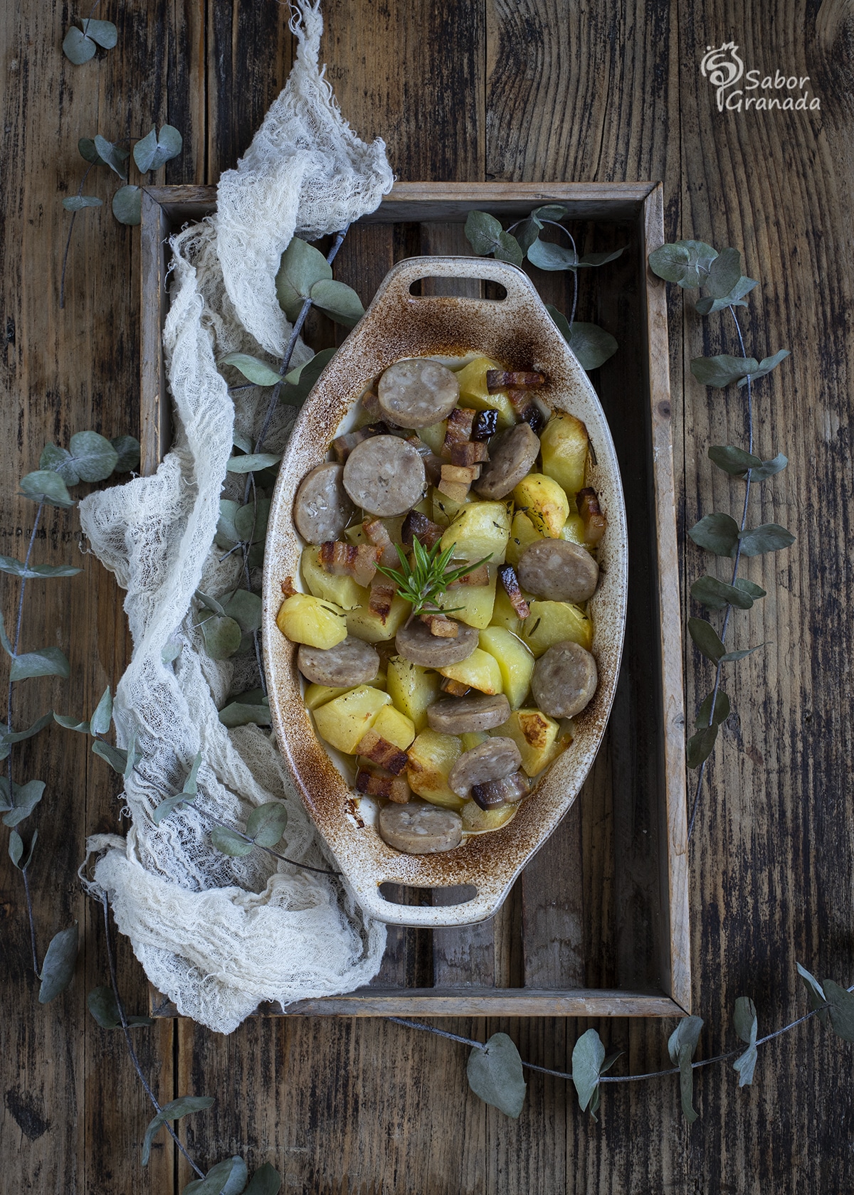 Por último, sacamos del horno y añadimos la salchicha cortada en rodajas, horneamos 5 minutos más.