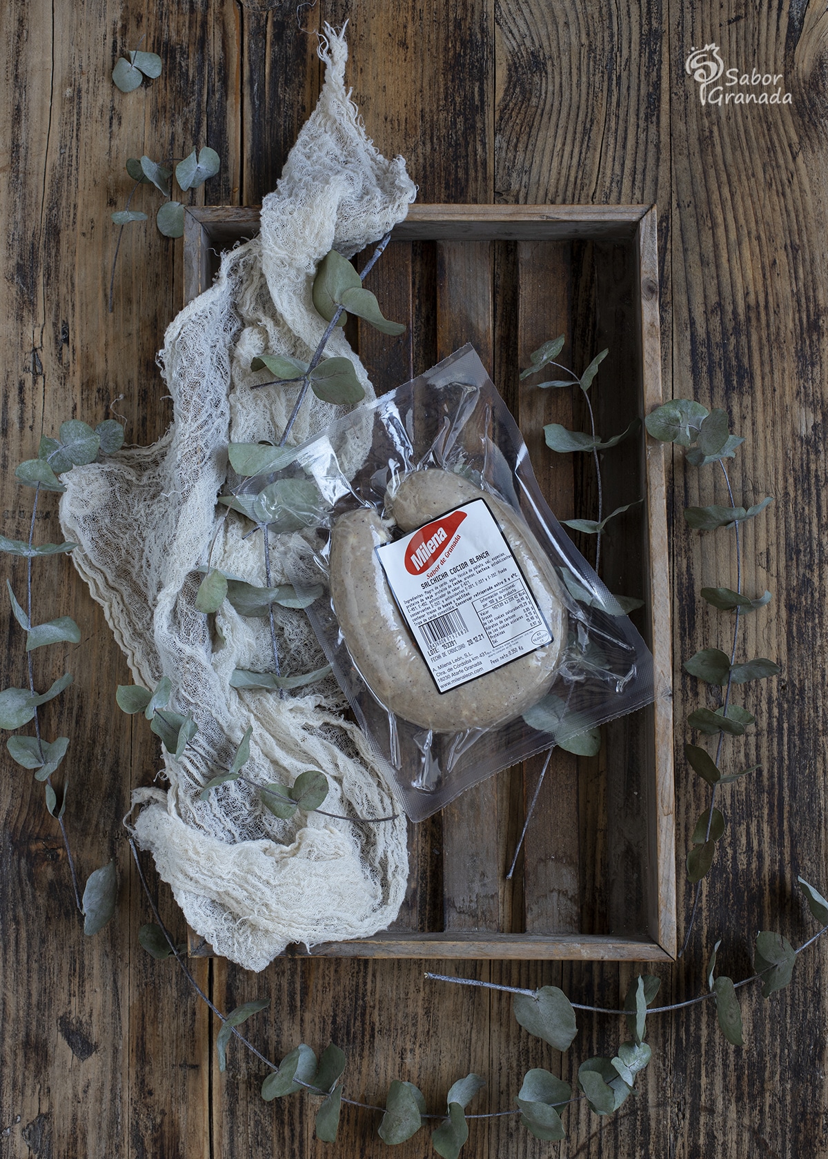 La salchicha blanca cocida es lo que se conoce como butifarra andaluza y en esta ocasión hemos usado la de Milena. Milena es una empresa granadina, con más de cuatro décadas de dedicación y experiencia en la elaboración de jamones y embutidos de la más alta calidad. El reconocimiento y prestigio de sus productos procede de una rigurosa selección de materias primas que cumplen con las máximas garantías de calidad, de la tradición heredada y de las importantes inversiones realizadas para la mejora permanente del proceso de producción de jamones y embutidos.