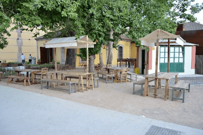 La terraza cuenta con una parrilla y un ‘showcook’ donde se puede ver en directo el funcionamiento de la cocina. Acoge todo tipo de eventos y está situado junto a una sala de exposiciones y la antigua fábrica donde se celebran conciertos.