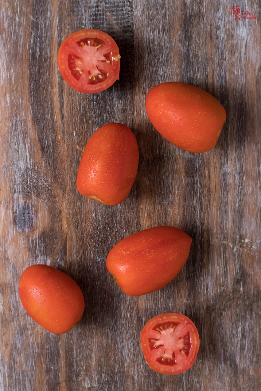 Ponemos a calentar el aceite en una sartén amplia, y, mientras, pelamos los tomates. Los cortamos en varios trozos y añadimos a la sartén. Añadimos un poco de sal y dejamos a fuego lento hasta que el tomate esté frito completamente.