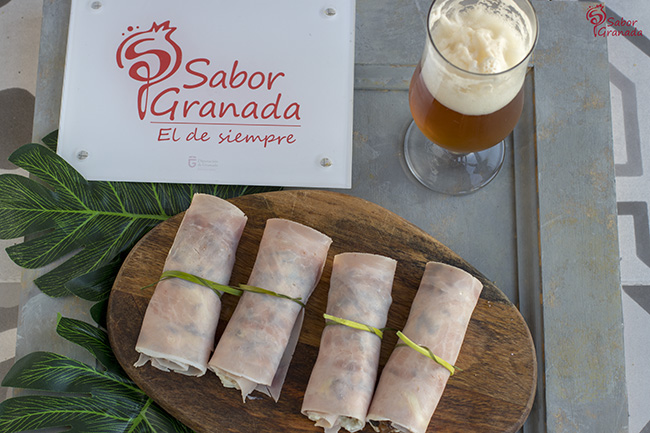 Los rollitos los hemos acompañado con una de las cervezas de Cervezas Alpujarra. La Doble IPA. Cerveza de elaboración artesanal de fermentación alta, estilo India Pale Ale, color cobrizo intenso con ingredientes naturales y la pureza del agua de las cumbres de Sierra Nevada. Lo de “Doble» nos indica que es una versión más fuerte que las IPAs.