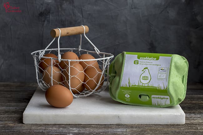 Los huevos que he usado para la receta son los huevos ecológicos de Huevos Garrido, de los que os hablé hace unas semanas cuando nos comimos los huevos rotos con jamón. Son huevos de Categoría A procedentes de explotaciones ecológicas, donde los animales cuentan con espacios libres, disponiendo de patios y zonas de pastoreo. En ellos los animales satisfacen sus necesidades fisiológicas y de comportamiento. La alimentación de las gallinas está basada en productos obtenidos bajo la normativa de producción ecológica vigente, así como el uso de aditivos y coadyuvantes tecnológicos autorizados para la fabricación de piensos ecológicos.