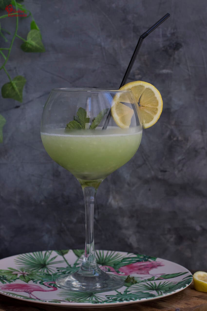 Servimos en una copa o vaso para la ocasión. Introducimos dentro una rodaja de lima. Decoramos la copa con una rodaja de limón y le añadimos unas hojas de hierbabuena o menta.