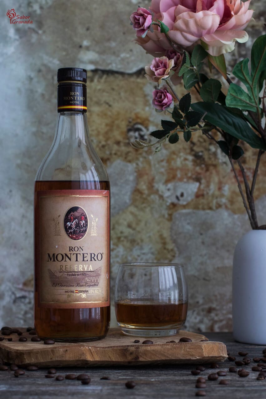 Hay multitud de versiones del tiramisú, en algunas recetas se les pone algún licor y en otras no. En esta ocasión yo le he dado un toque con otro producto motrileño, el Ron Montero Reserva, otro de los rones abanderados de la marca. Elaborado con aguardiente y destilado de caña de azúcar de gran calidad. Envejecido durante cinco años en barricas vírgenes de roble americano por el sistema tradicional de soleras y criaderas. De color ambarino dorado, tiene aromas de buena intensidad, con notas tostadas y de frutos secos. De final largo se recomienda tomarlo en copa, solo o con una piedra de hielo.
