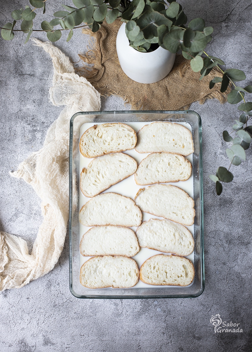 Le damos la vuelta a las rebanadas y dejamos que empapen por el otro lado durante unos minutos más.