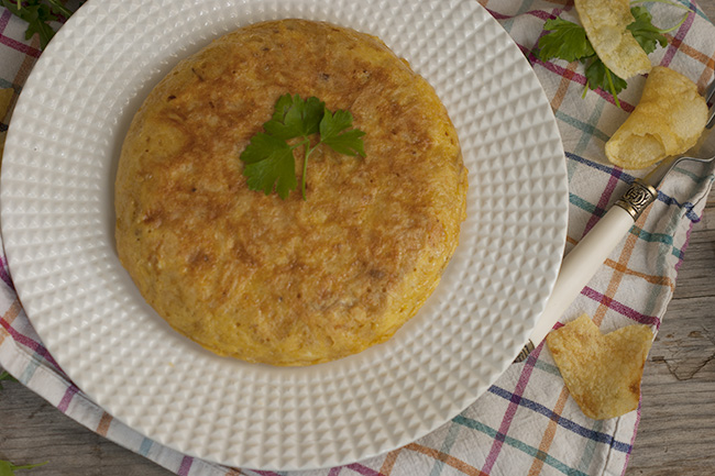 La de hoy es una de esas recetas que cuando comentas con alguien que la vas a hacer te mira un poco incrédulo y te dice: ¿tortilla de patatas con patatas de bolsa????. Pues bien parece ser que la idea surgió del equipo del Restaurante El Bulli, capitaneado por el mismísimo Ferrán Adriá. Y la verdad es que yo creó que funcionó la idea tan bien por la comodidad que supone preparar esta tortilla sin el previo paso de freír las patatas. Es unan tortilla de patatas exprés con muy buen resultado, que podremos preparar en muy poco tiempo y puede servir de un improvisado almuerzo o cena.